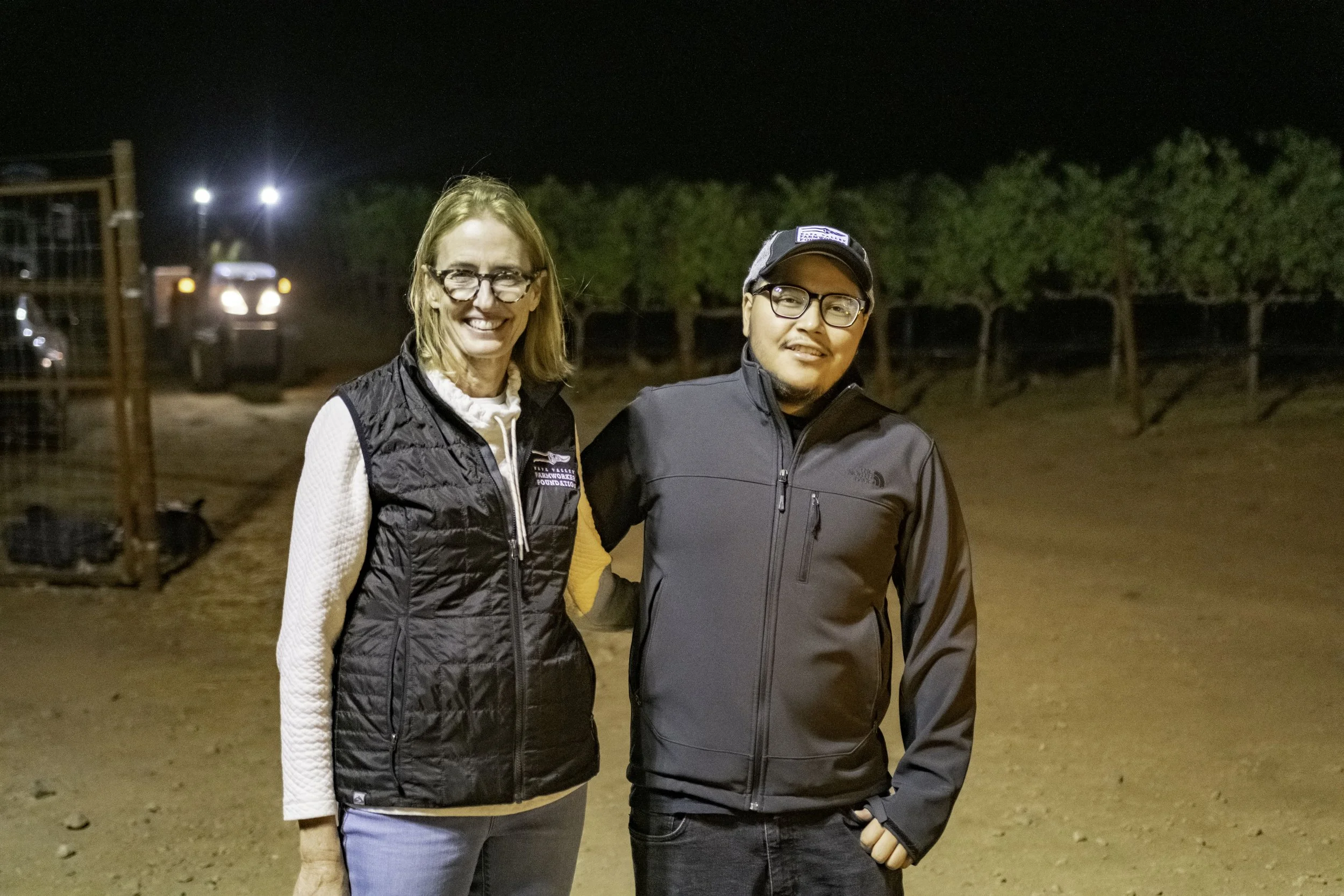 The Farmworker Foundation’s Program Manager, Jill Durfee, and Julio Martinez, Administrative Assistant, were invited to observe a night harvest with the dedicated team at Bianco Winegrowing. From the moment of arrival, a warm welcome created an inclusive and positive atmosphere for the night.